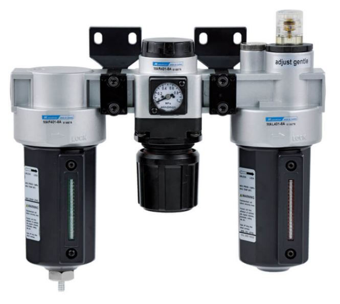 3)Lubricator: This supplies oil to lubricate the solenoid valve and cylinder.